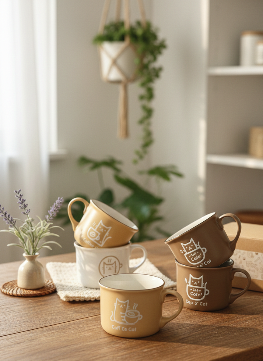 ست ماگ سرامیک طرح گربه و قهوه